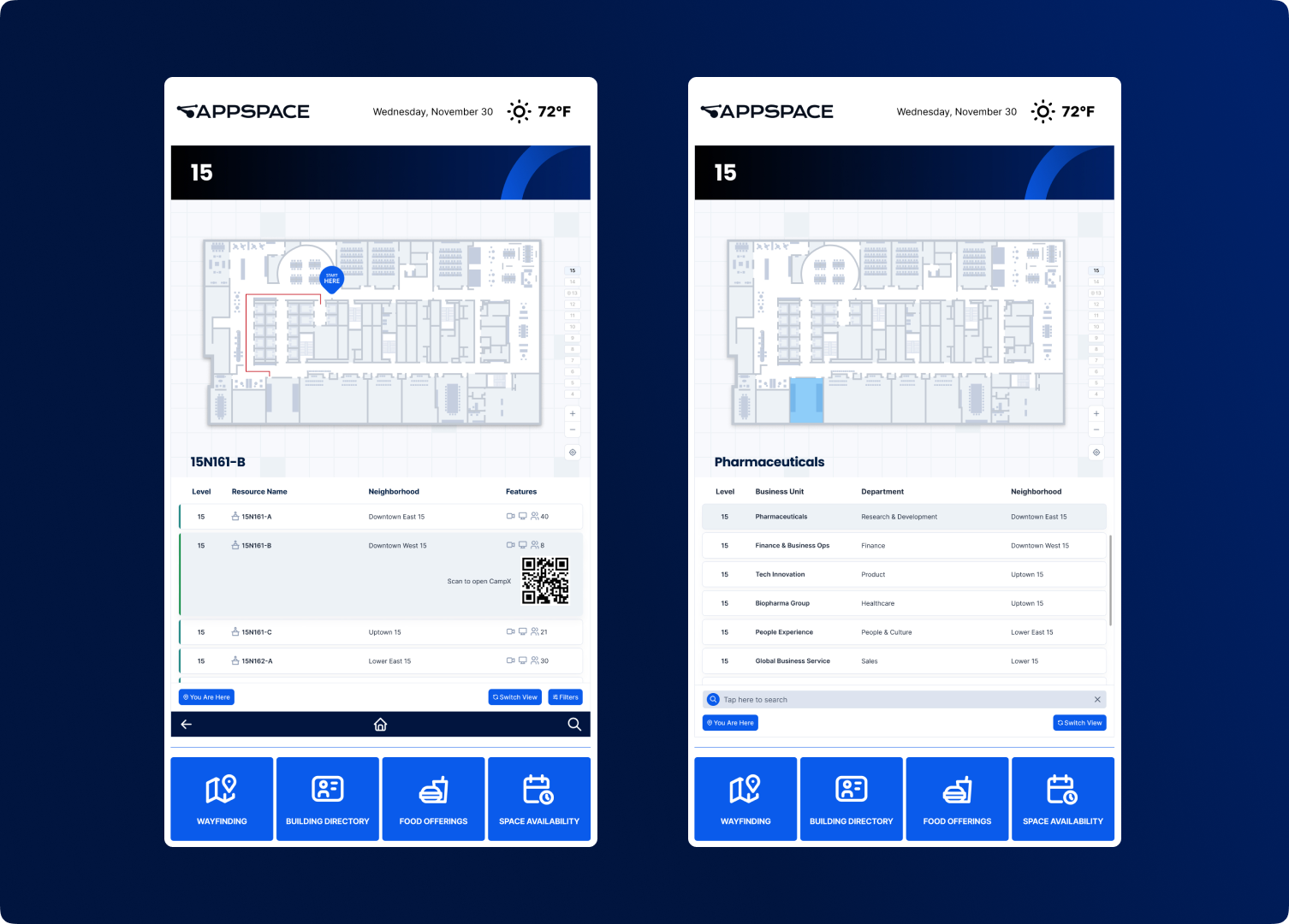The kiosks have created a visible, accessible window into the HQ with more than 2,000 spaces mapped and fitted with sensors that show occupancy. This gives insight into how people are using rooms, desks, huddle areas, and conference spaces.