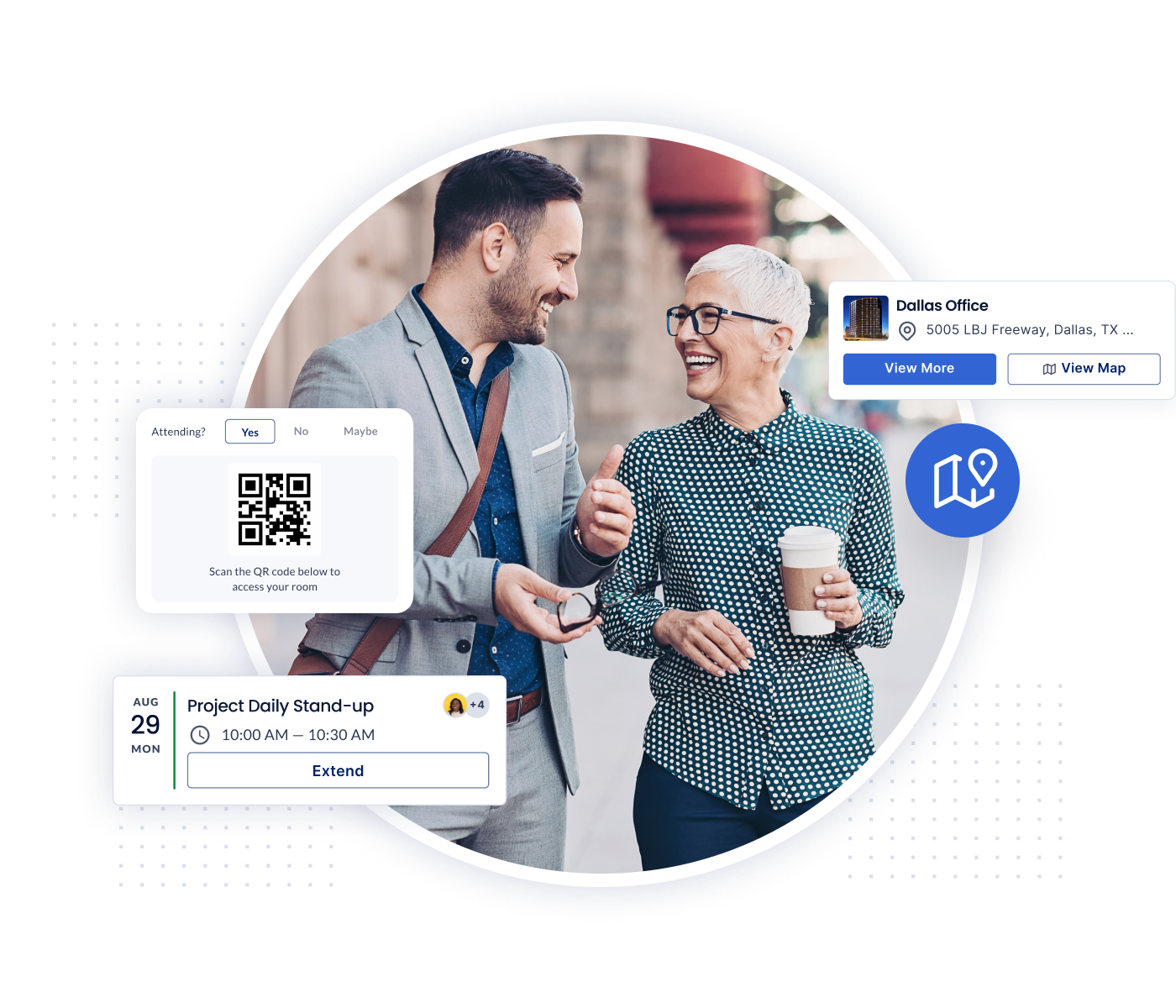 Corporate workers can find and book a desk near their team, the perfect room for client or team meetings, or even a parking space through our Space Reservation features built into the Employee App.