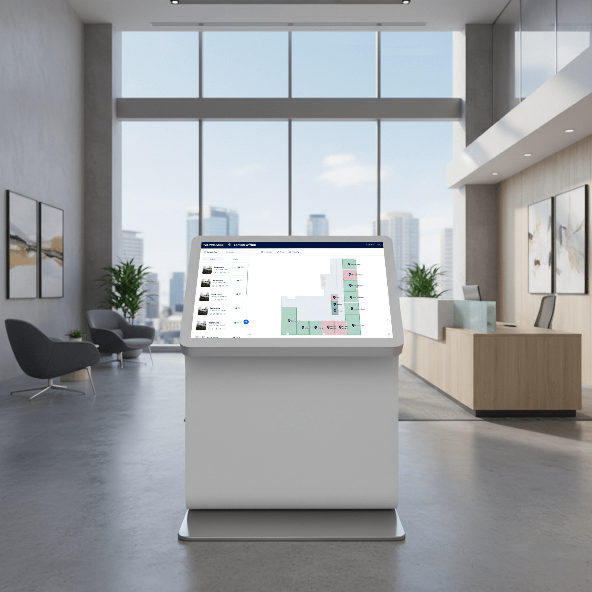 Microsoft Places makes it easier to organize and optimize office spaces. Our integration brings Microsoft Places maps into the real world by displaying them on kiosks and digital signage. That way, employees have quick, interactive access to the wayfinding info they need to get around.